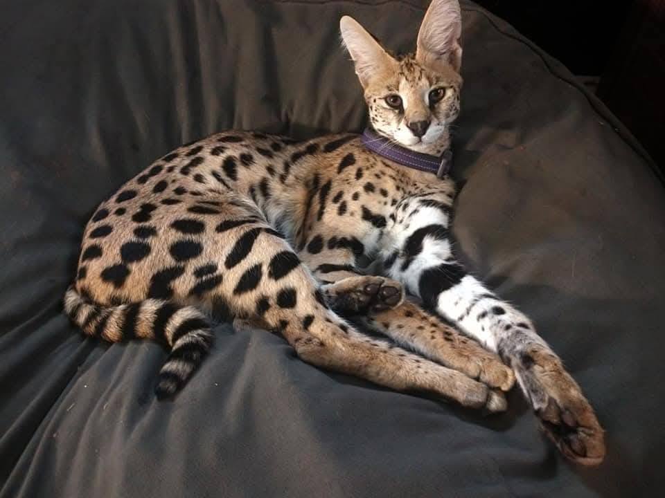Servals are native to sub-Saharan Africa and live on savannas, grasslands and wetlands across much of the continent. Adults are considered medium-sized cats that stand up to 2 feet tall at the shoulders and weigh up to 40 pounds. They are not considered aggressive toward people, and it is legal to own them as pets in Pennsylvania with a special permit.
