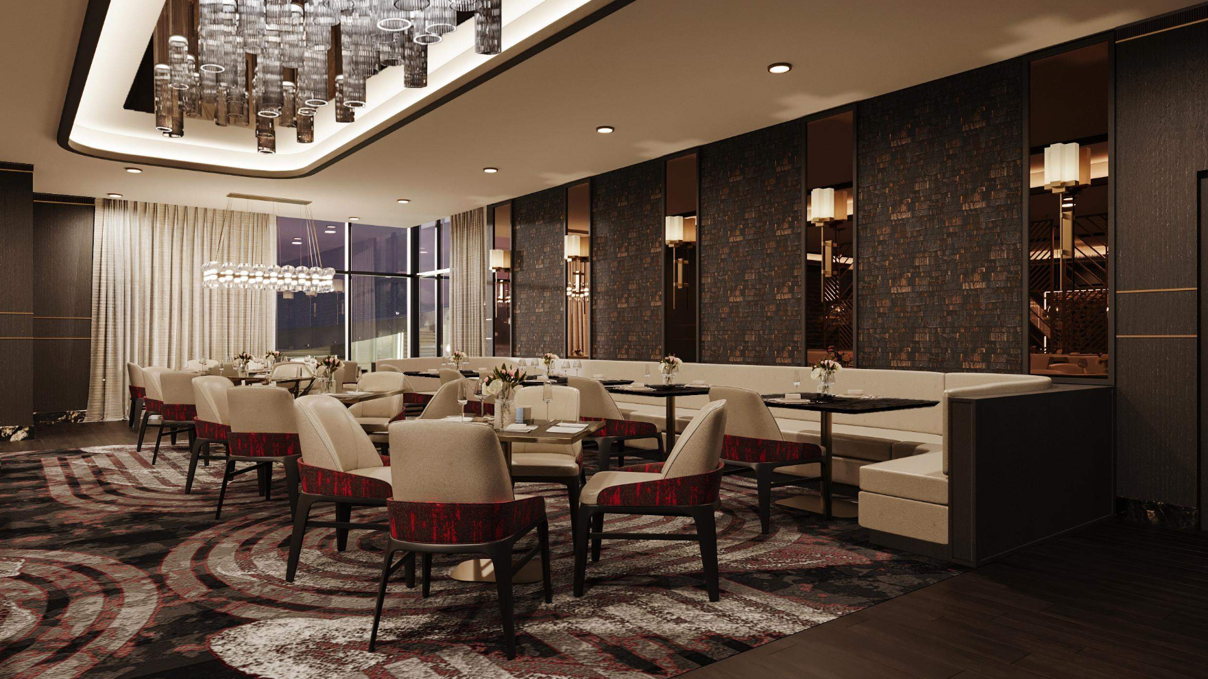 Renderings of the steakhouse show a sleek, modern interior with abstract art pieces adorning the walls and elaborate light fixtures hanging over its dining tables. References to Barkley's 16-year NBA career also will be displayed.