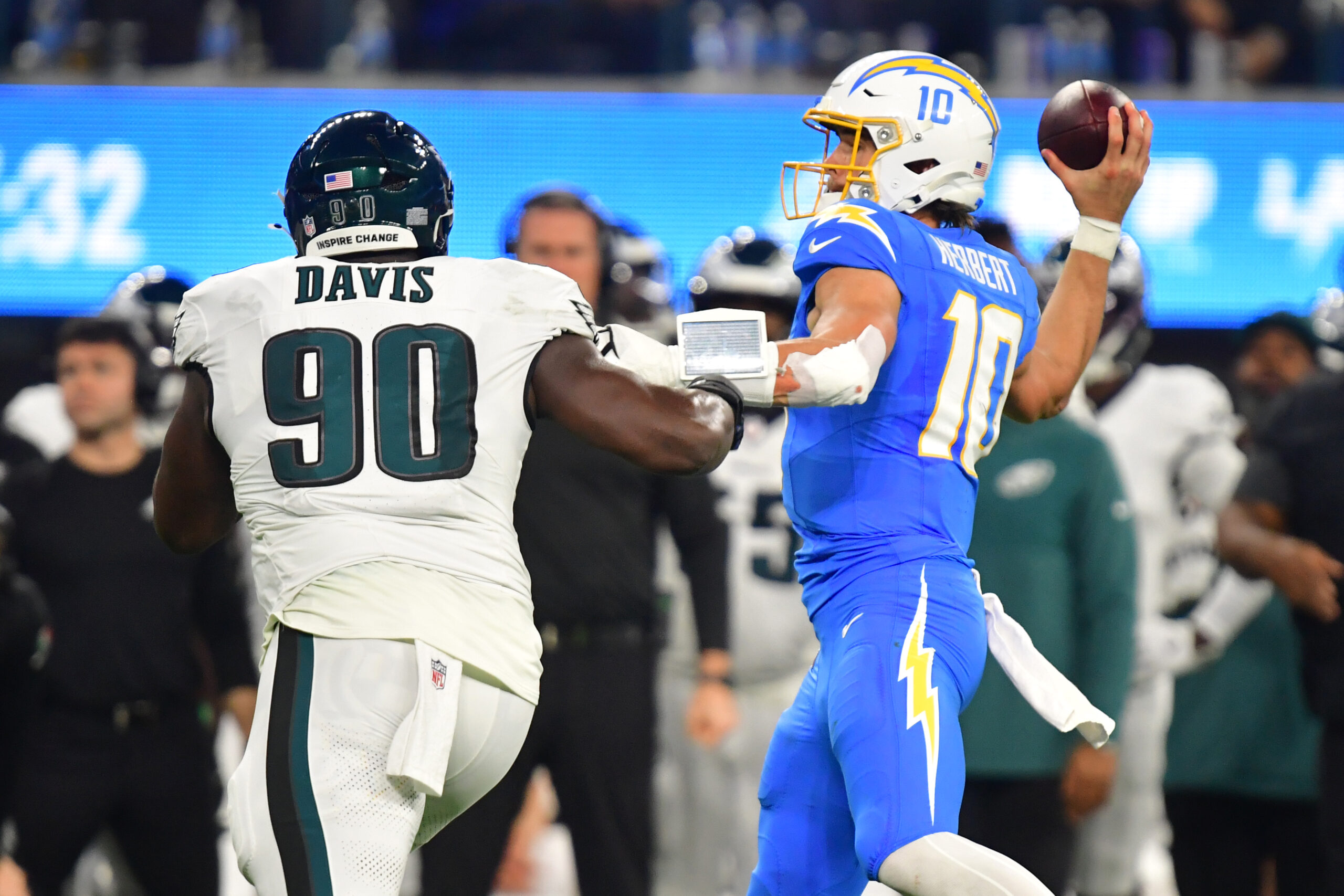 Phillips also played physically all night, and hit Justin Herbert's arm on Adoree' Jackson's INT.