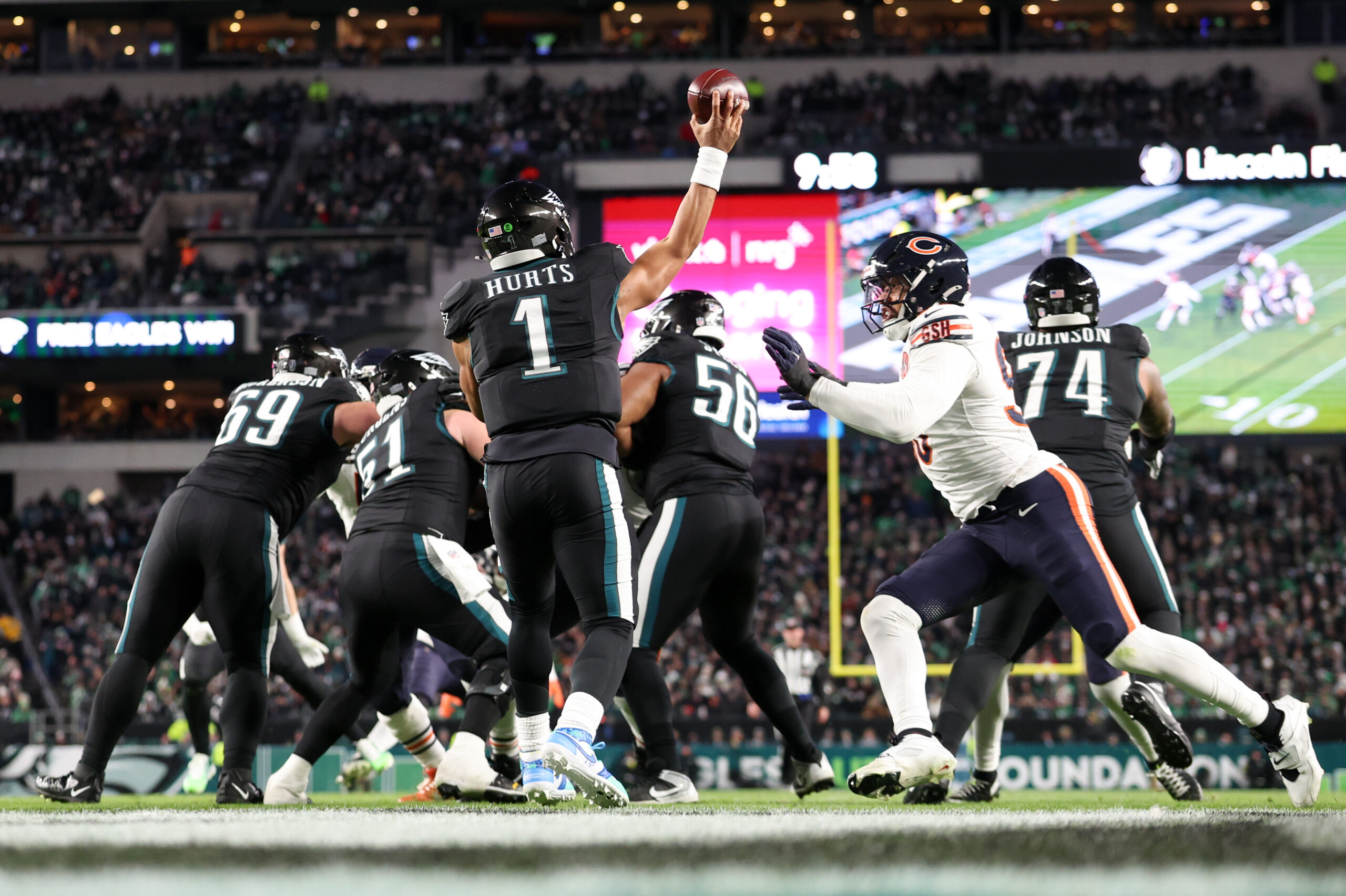 Jalen Hurts went 19-for-34 passing for 230 yards, and A.J. Brown led the Eagles in receiving with 10 catches for 132 yards and two touchdowns. The latter score, however, came in garbage time and with the Eagles' offensive gameplanning almost seeming to go out of its way to avoid the middle of the field until late, even with the knowledge openly out there that Chicago was heading into Friday without its best linebackers.