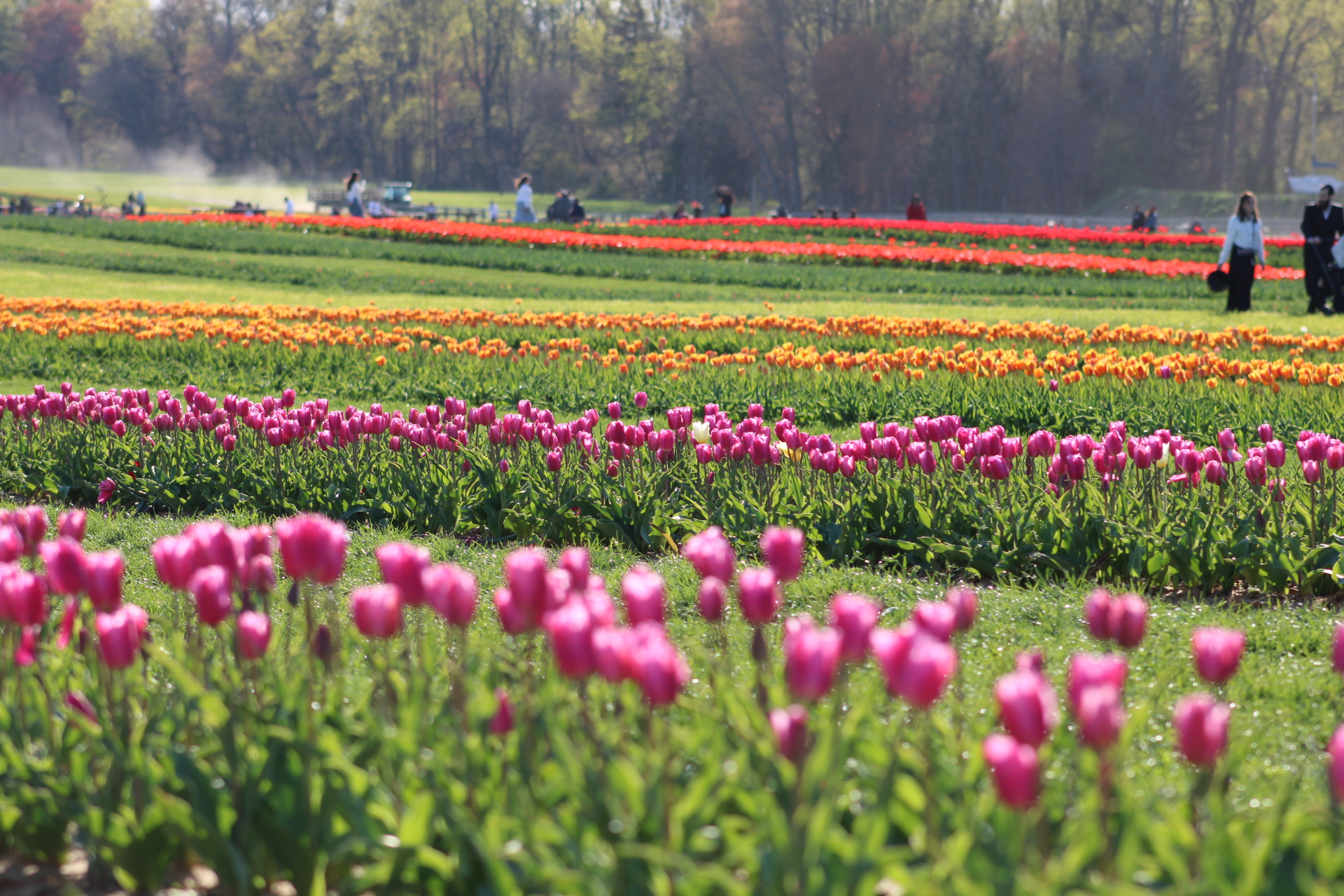 Bloom timing changes throughout the season. Earlier in April, tulips are more closed and better for taking home, while peak bloom later in the month brings fully open flowers that are best for photos.