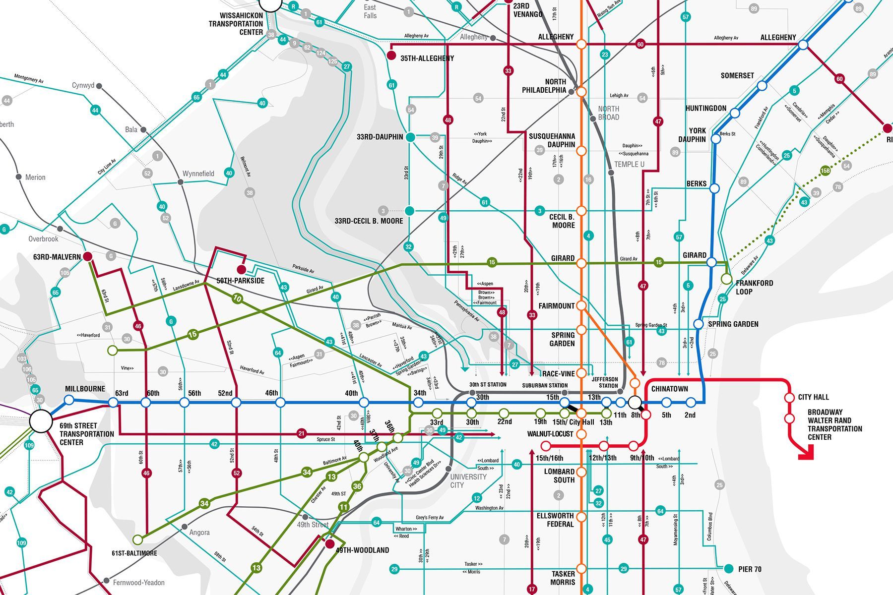 The bus network complements Philadelphia’s larger transit ecosystem. It fills in coverage gaps underneath subway and regional rail lines, extends the reach of trolley routes, and brings transit to lower-density and suburban areas that lack fixed-rail options.