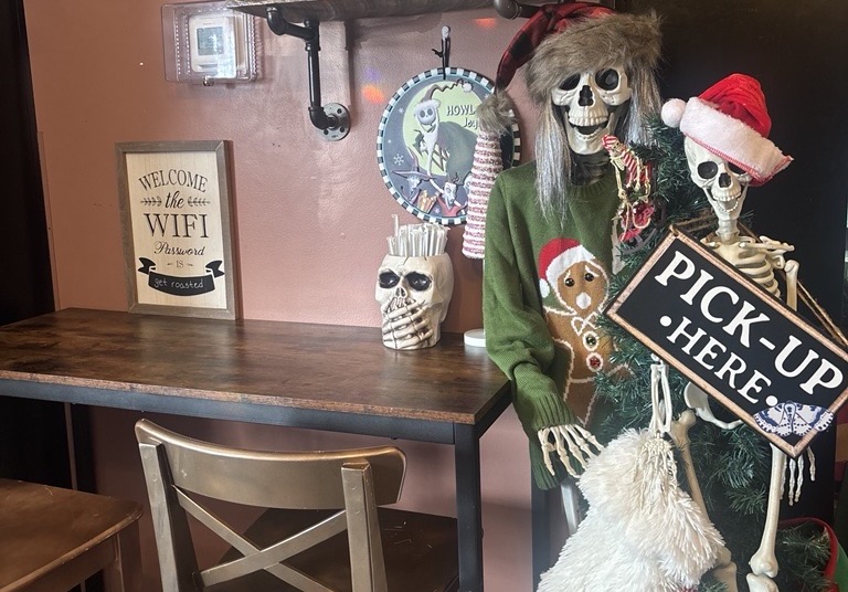 Friendly skeletons greet the customers at Pot Heads, the coffee shop located off Route 13 in Bensalem. Sometimes they sport Santa hats or bunny ears. In the summer, they break out bucket hats and grass skirts. But they're always there, paying tribute to co-owner Faith Noga's daughter Mila, who died at the age of 14.