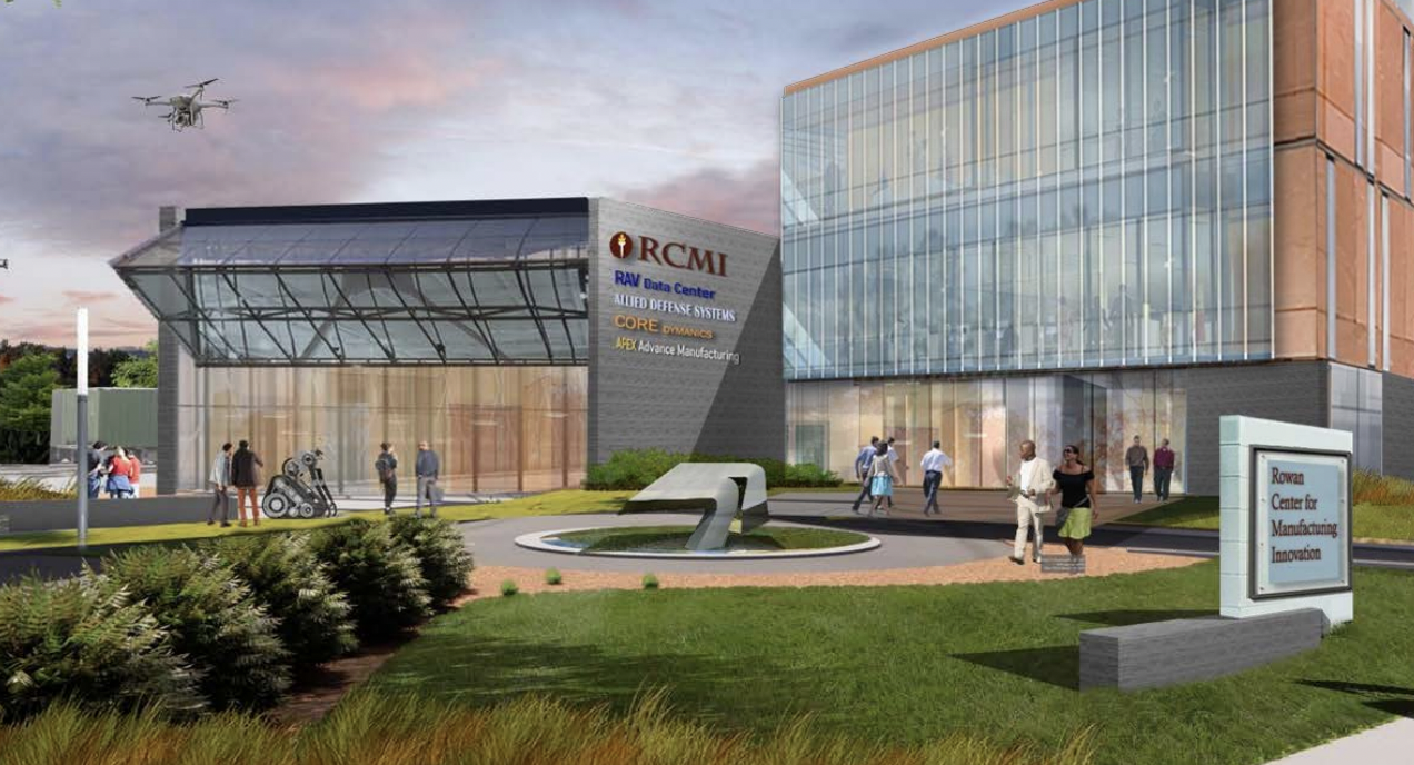 The first of the new buildings planned at the technology park will be the Rowan University Center for Manufacturing Innovation. The facility will bring together Rowan's engineering research institutes and private companies to create a jobs pipeline for future graduates. Areas of focus include advanced manufacturing, transportation engineering, artificial intelligence and virtual reality.